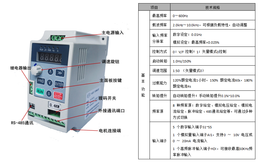 功率:0~0.75kw 0~500HZ 尺寸:136.5mm*130mm*60mm
